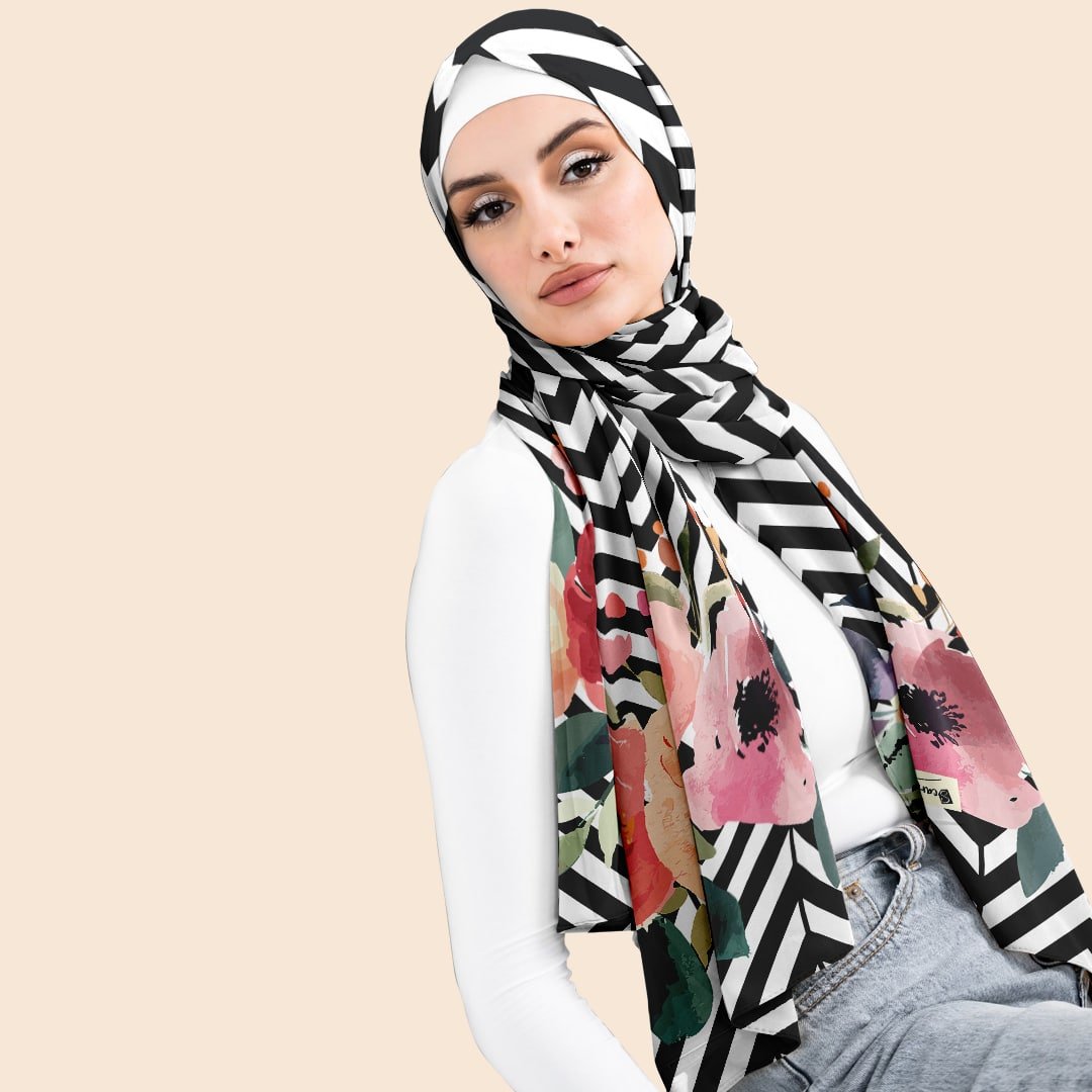 Matière : Notre châle est confectionné à partir d’un crêpe léger de haute qualité, offrant une texture fluide et agréable au toucher. Sa composition lui confère une opacité parfaite, vous assurant un look sophistiqué en toute circonstance.